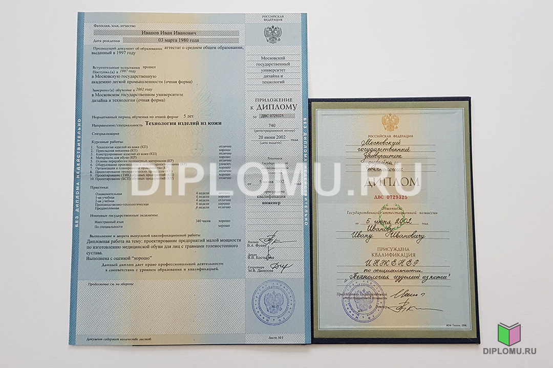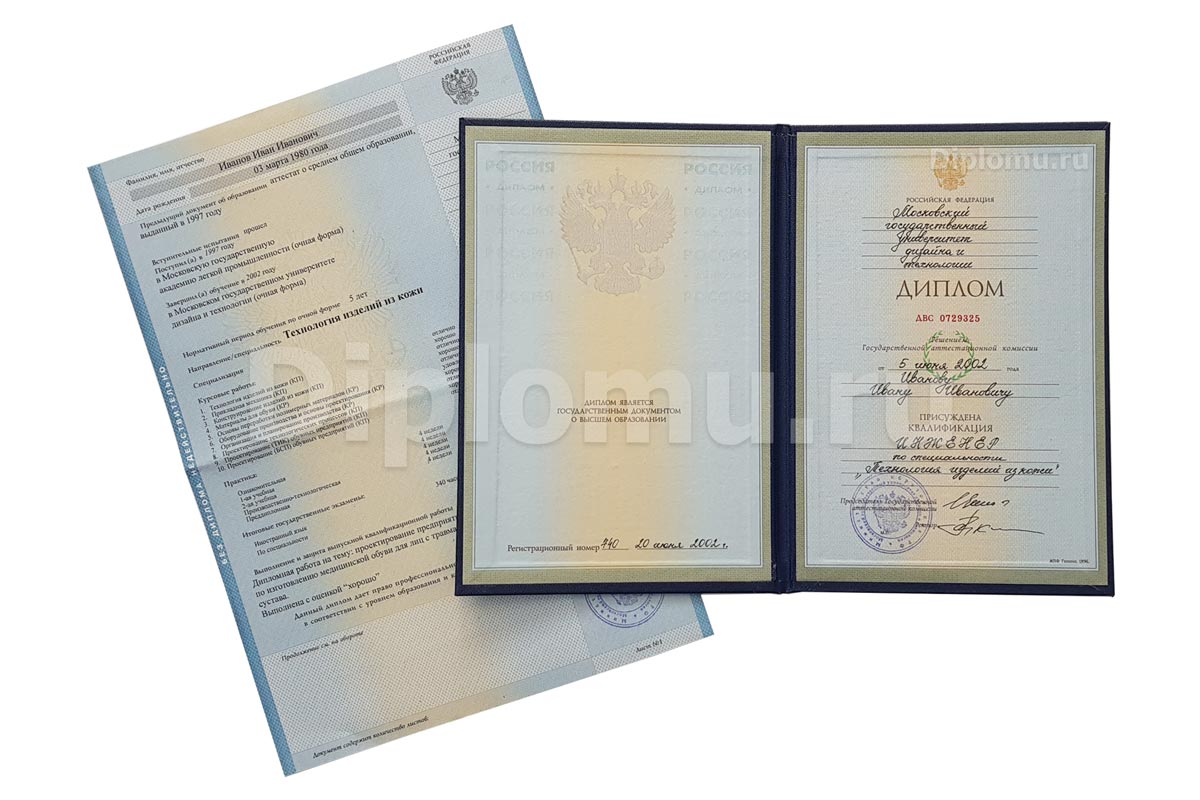 На нашем сайте Вы можете купить диплом о высшем образовании с окончанием ВУЗа в 1997, 1998, 1999, 2000, 2001, 2002, 2003 годах. В данном разделе представлены образцы и фото диплома, ознакомиться подробнее с которыми можно, кликнув по картинкам ниже. Наши специалисты заполнят диплом по всем правилам, установленным Министерством образования и науки РФ. Заверяются «мокрыми» печатями и нужными подписями.